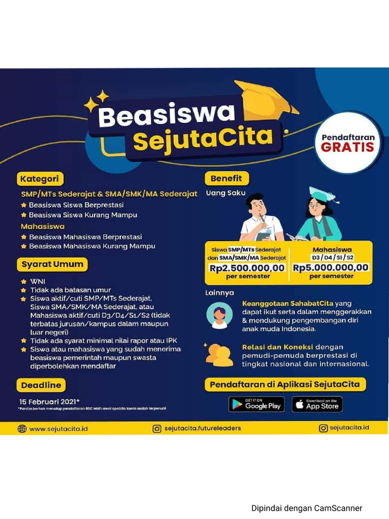 Beasiswa Dataprint 2025 periode ketiga terbuka untuk pelajar SMP hingga mahasiswa S1. Pendaftaran dilakukan per 2 bulanan, terbagi dalam 4 periode. Manfaatnya berupa uang tunai Rp 500 ribu untuk 15 orang. Syarat pendaftaran termasuk mengisi formulir dengan data yang benar, memiliki kupon DataPrint, dan membuat video esai sesuai tema yang ditentukan. Proses pendaftaran bisa dilakukan melalui link resmi.