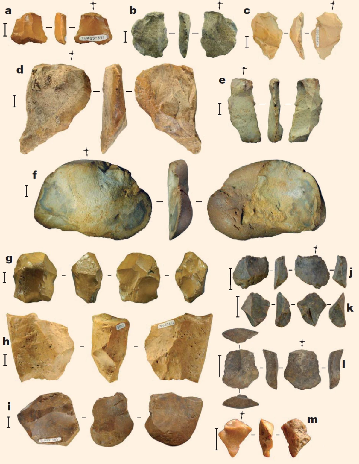 Tujuh batu itu kemudian diteliti untuk mengetahui umurnya. Para peneliti menggunakan kombinasi teknik paleomagnetik pada sedimen dan penanggalan Rantai Uranium (Uranium-series), serta Penanggalan dengan resonansi spin elektron terhadap fosil gigi yang masih dalam konteks yang sama dengan artefak batu. Teknik penanggalan yang kompleks dan presisi tinggi ini memastikan bahwa artefak tersebut benar-benar berasal dari periode Pleistosen Awal atau berusia di atas satu juta tahun.